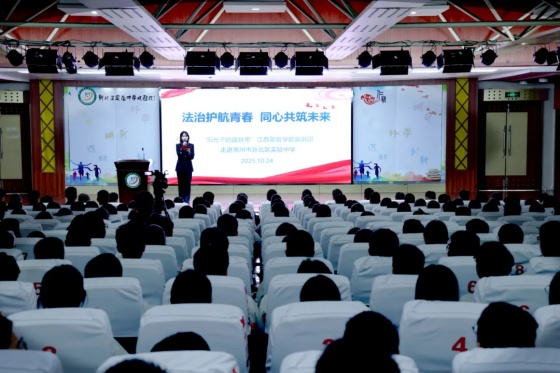 金秋十月,丹桂飘香。10月24日下午,常州市新北区实验中学礼堂内掌声雷动、歌声飞扬。由常州市公安局、常州市教育局联合江苏警官学院共同主办的“法治护航青春·同心共筑未来”主题宣讲活动暨法治第二课堂在这里温情举行,用青春的语言、专业的视角、真挚的情感,为少年们带来一堂有温度、有深度、有力度的法治教育课。 1350名初二学子与“藏蓝青春”面对面,在“警察蓝”的守护下,共赴一场法治与成长的温暖之约。 “阳光下的蓝丝带”宣讲团,是由江苏警官学院教师、实战教官与优秀警校大学生组成的志愿服务团队。他们多次受邀走进校园、走进社区、走进家庭,开展“送法律、送安全、送阳光、送健康、送学习、送温暖”六送行动,用实际行动践行新时代公安青年的使命与担当。 此次走进常州,是应常州市公安局的邀请,旨在通过警校联动,构建常态化、精准化的青少年法治护航体系,为未成年人健康成长撑起一片晴空。 此次宣讲不仅是“一堂课”,更是“一个新起点”。后期,常州公安还将在江苏省公安厅“苏警安新”未成年人安全守护工程全面推进的背景下,进一步联合教育部门、江苏警官学院,共同构建“警官学院—地方公安—教育部门—中小学校”四位一体的长效合作机制,聚焦辍学、失足、困难及有不良行为倾向的青少年群体,提供法治宣讲、心理疏导、学业帮扶、家庭沟通等精准关爱服务。 同时,组织学生走进警营、社区、派出所,开展沉浸式社会实践,真正实现“教育一个孩子,带动一个家庭,影响整个社会”。 |