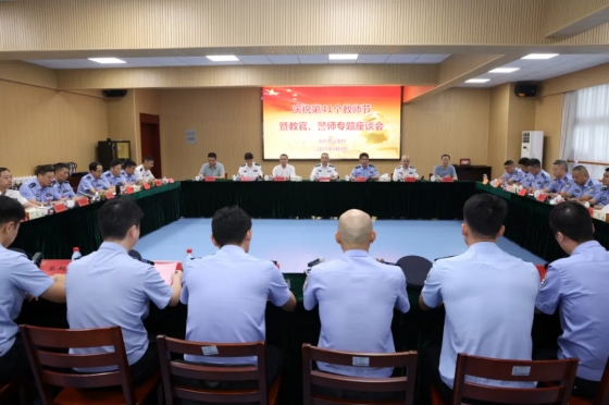 9月9日上午,市公安局举办庆祝第41个教师节活动暨教官、警师专题座谈会,市委常委、政法委书记、公安局长于贵平参加活动,实地观摩日常教学课程,向全体教官、警师和长期从事公安教育训练工作的同志致以节日祝贺和诚挚问候。